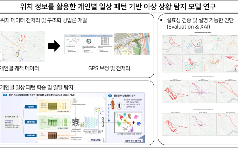 2025.07 ~ 2025.11 | ETRI 위치 데이터 전처리 및 구조화 방법론 개발 개인별 일상 패턴 학습 및 일탈 탐지 (AI Modeling) 실효성 검증 및 설명 가능한 진단 (Evaluation & XAI) 위치 데이터 전처리 및 구조화 방법론 개발 : 전자감독