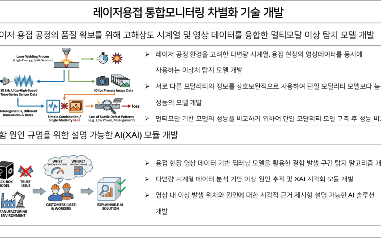 2025.06 ~ 2025.11 | LG전자 생산기술연구원 레이저 공정 환경을 반영하여 다변량 시계열 데이터와 용접 영상 데이터를 통합 활용하는 이상치 탐지 모델 개발 서로 다른 모달리티의 상호보완적 정보 활용을 통해 단일 모달리티 대비 성능이 향상된 모델 구현 및 비교 검증 다변량
